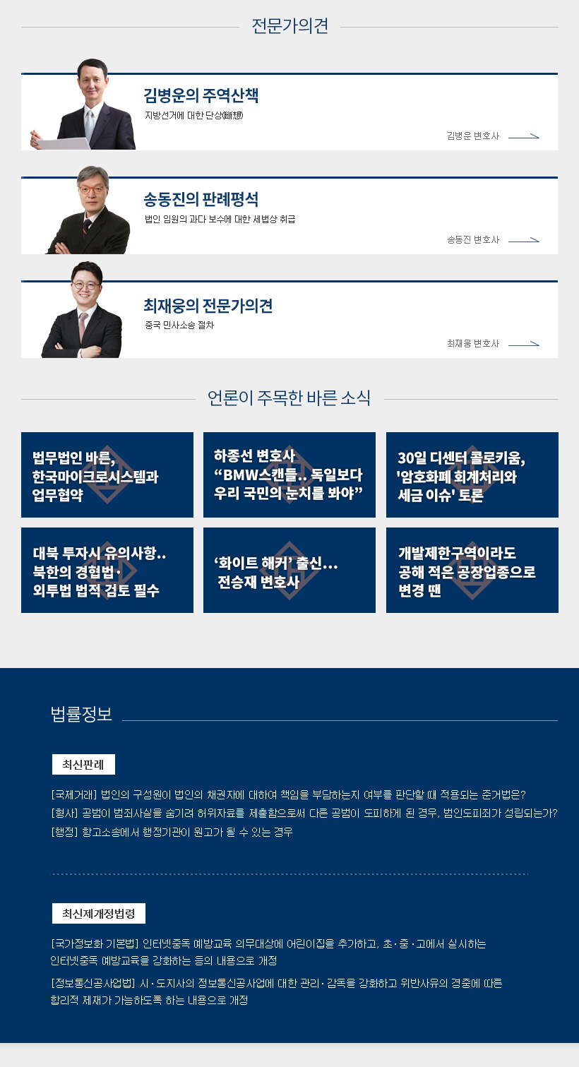 홈페이지 바른소개 업무분야 구성원 자료실 사회공헌 인재채용 블로그